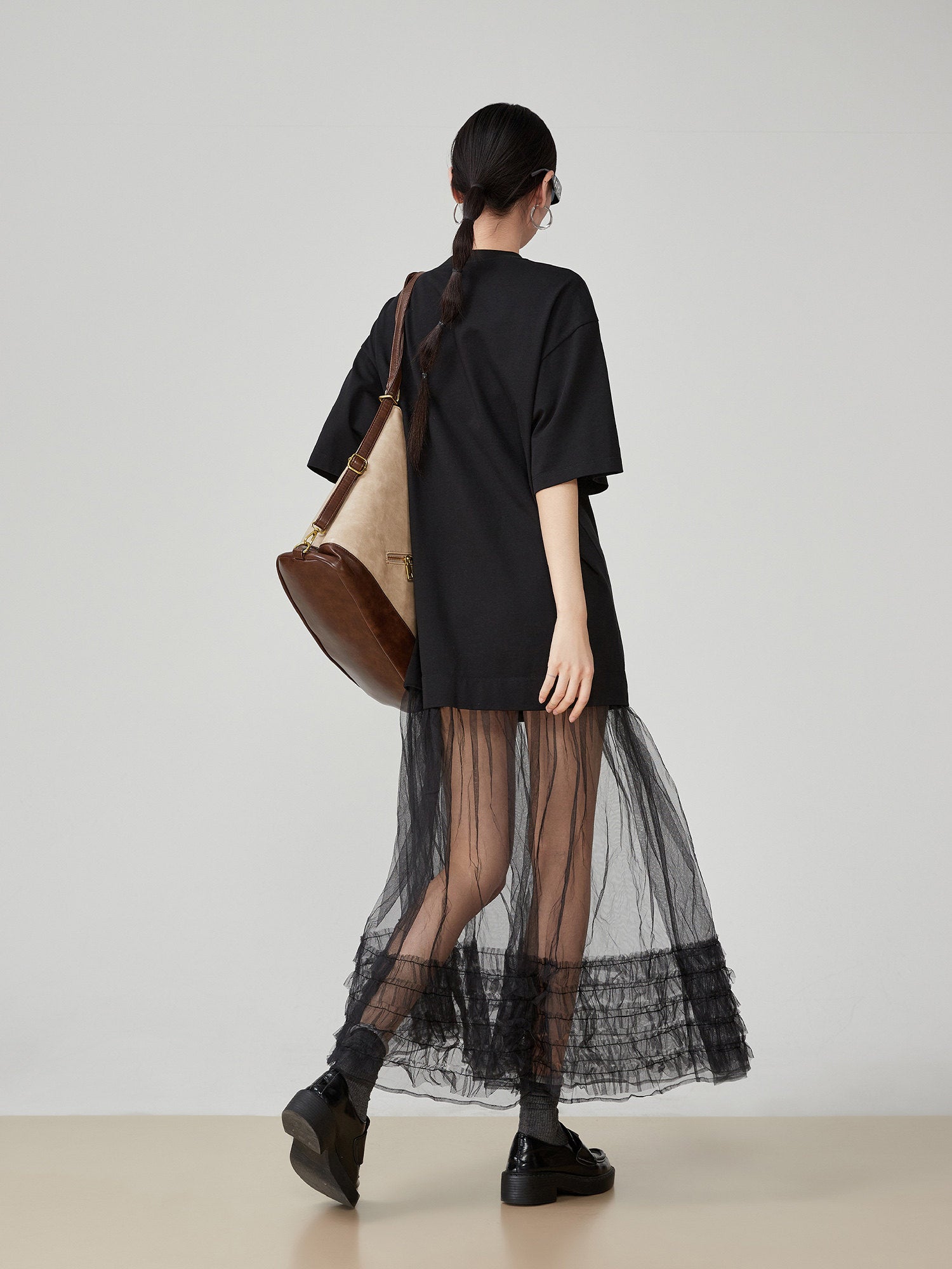 チュールをドッキングした、デザイン性の高い異素材MIXアイテム。
