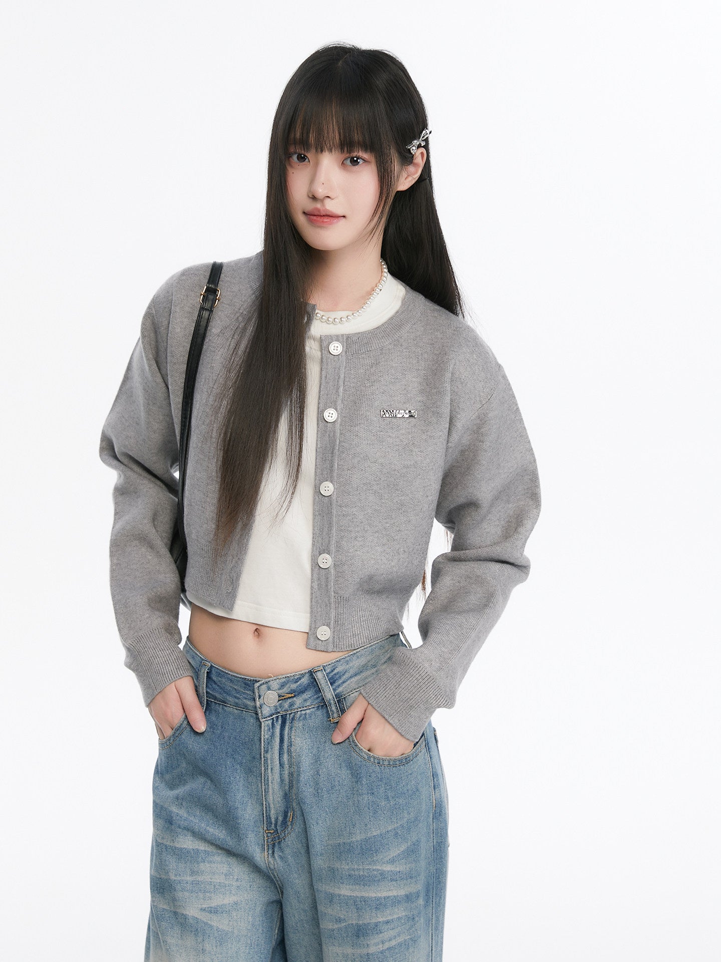 ラウンドネックとコンパクトな丈感がこなれ感を引き出すニットカーディガン。