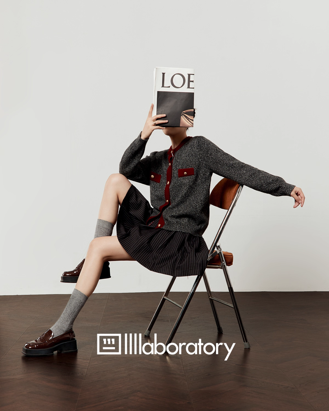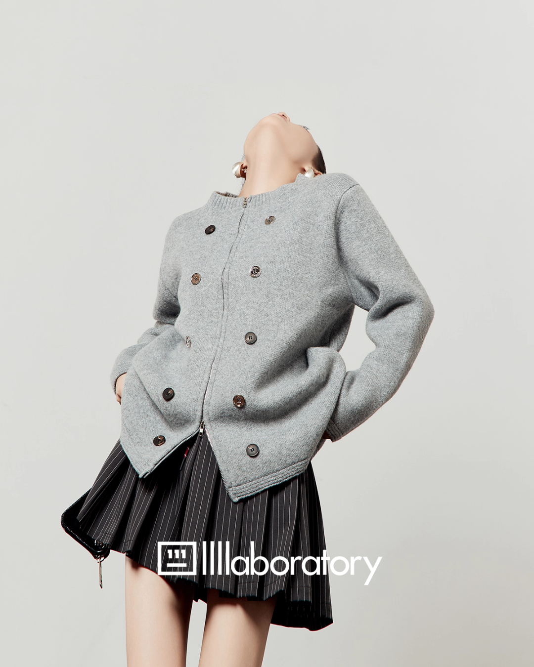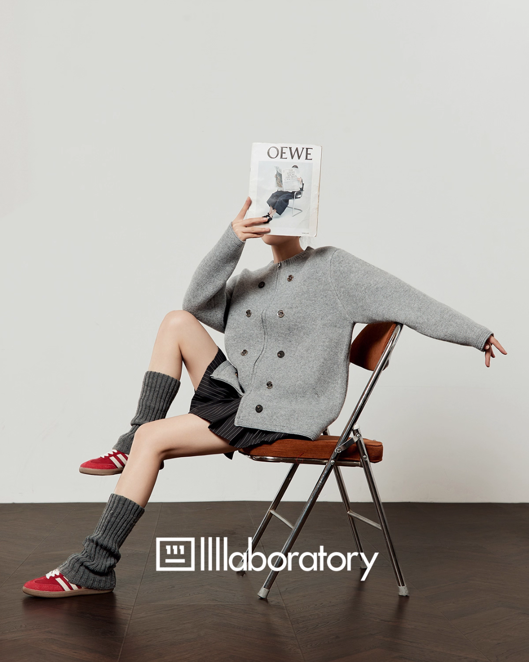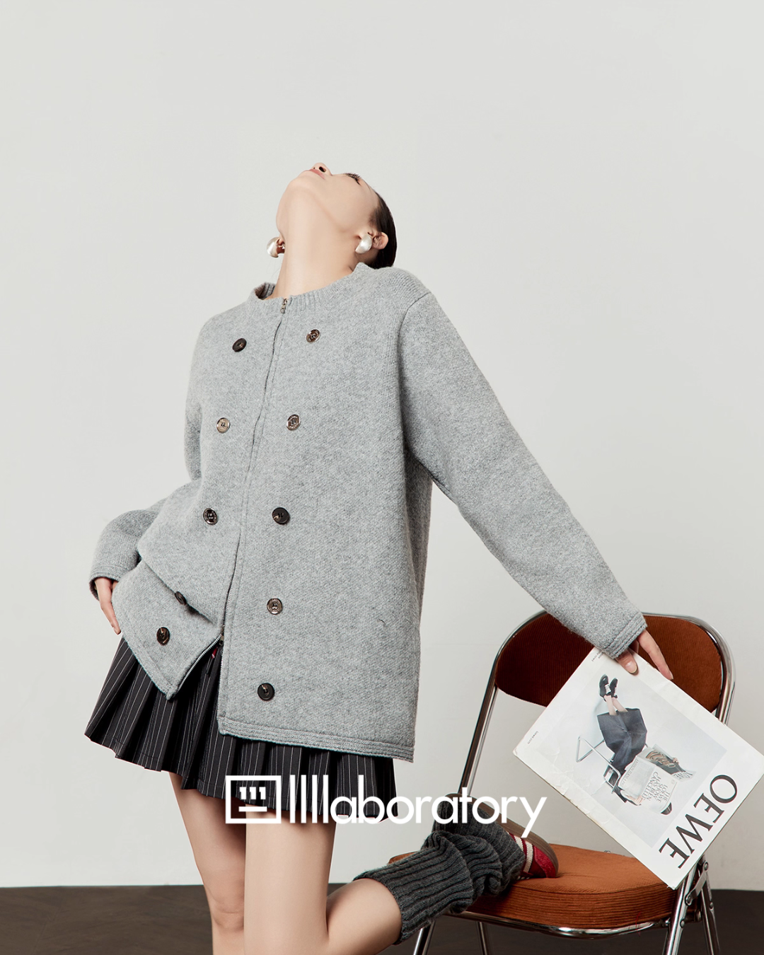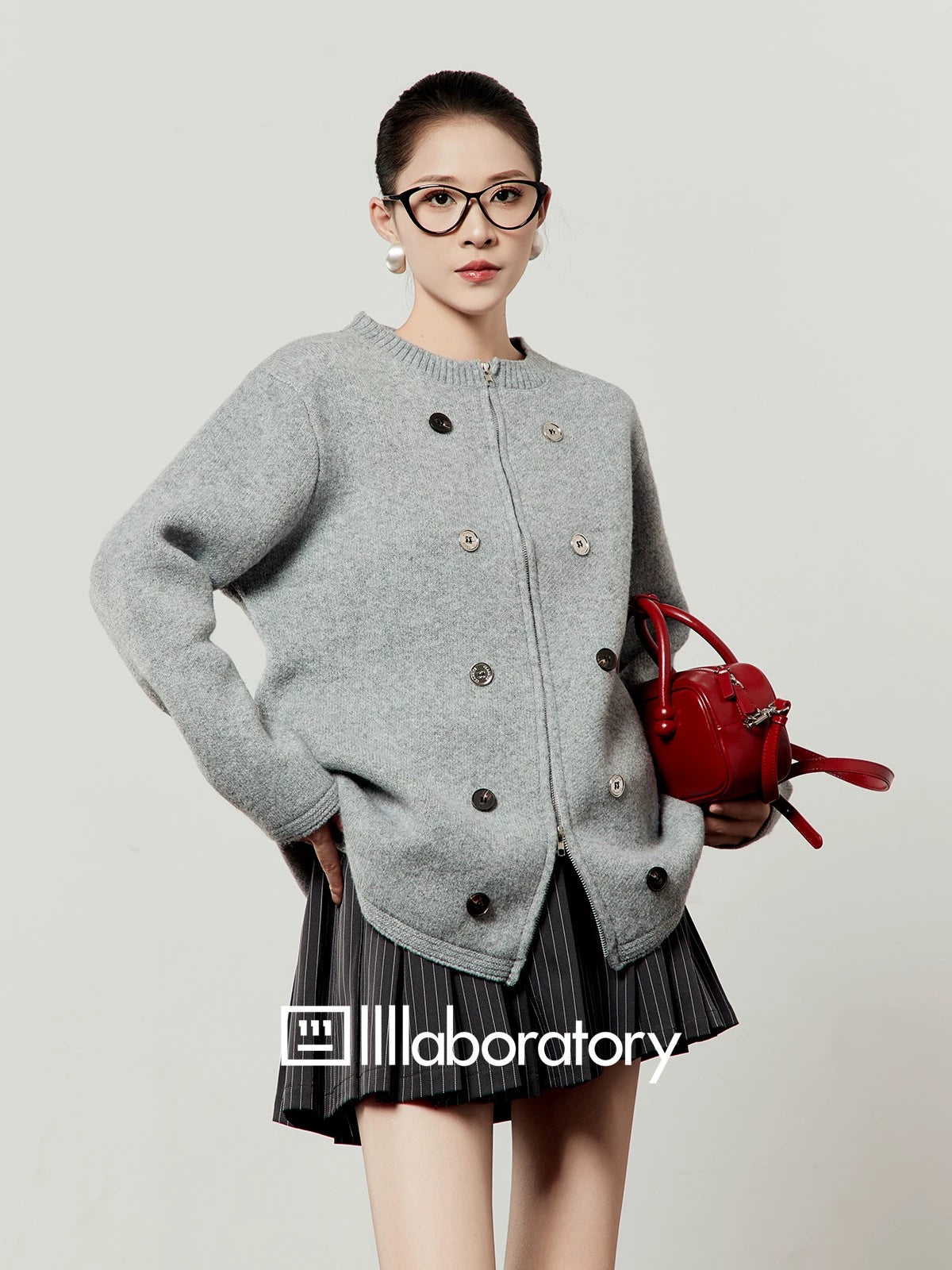秋のシーズンムード高まる、カーディガンとスカートのセットアップ。