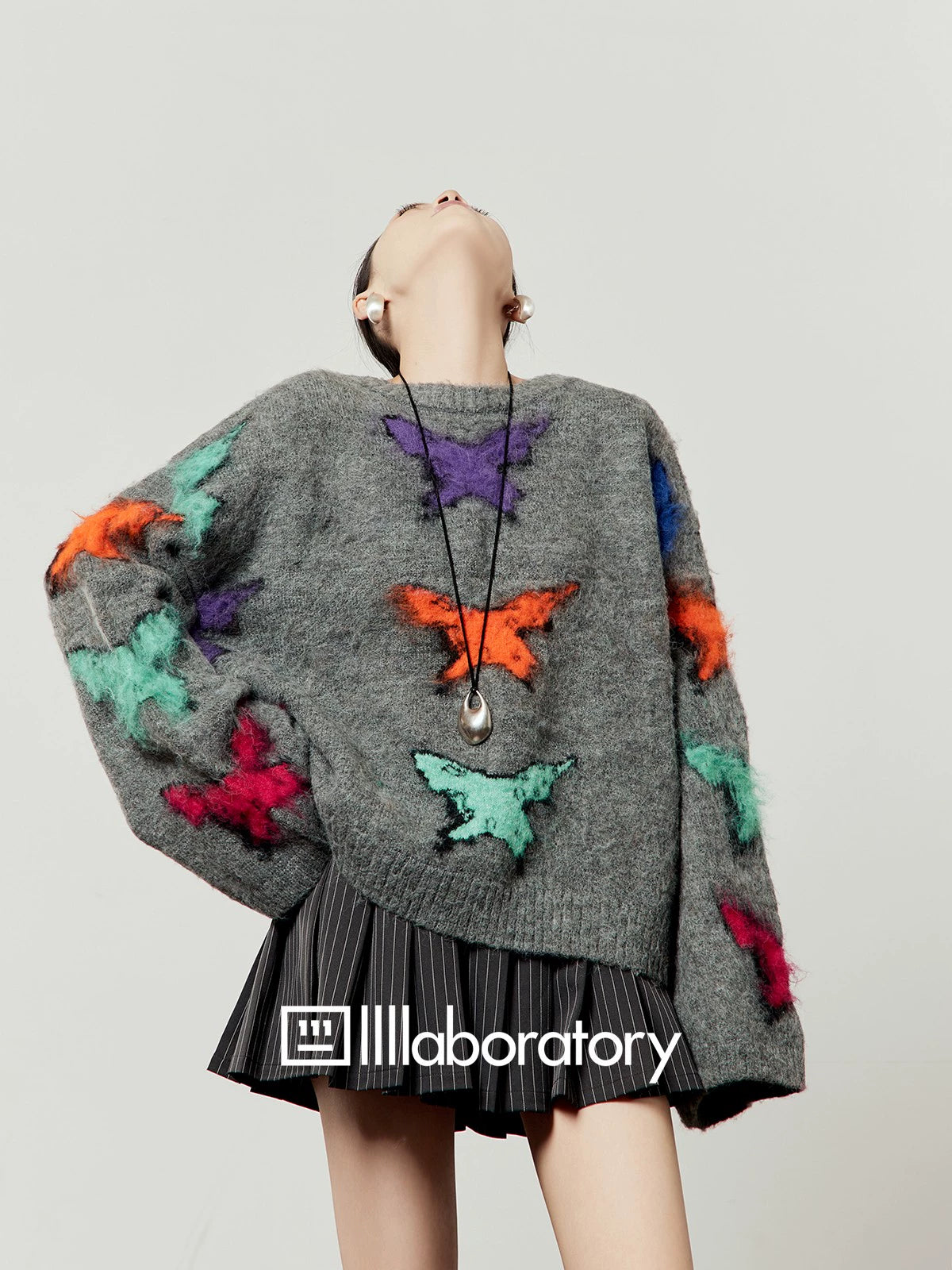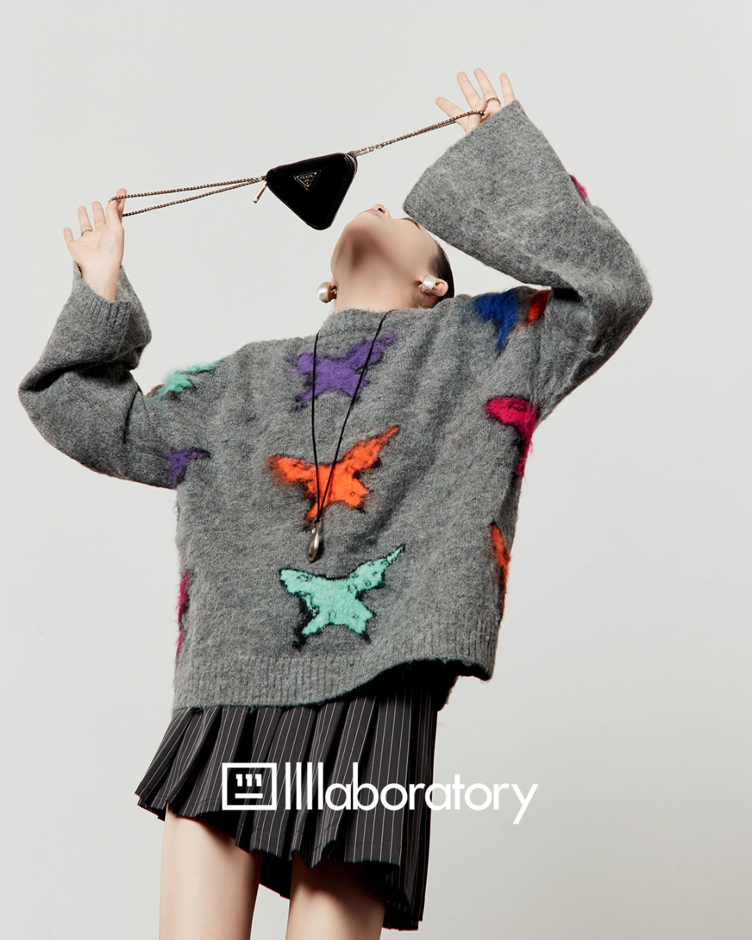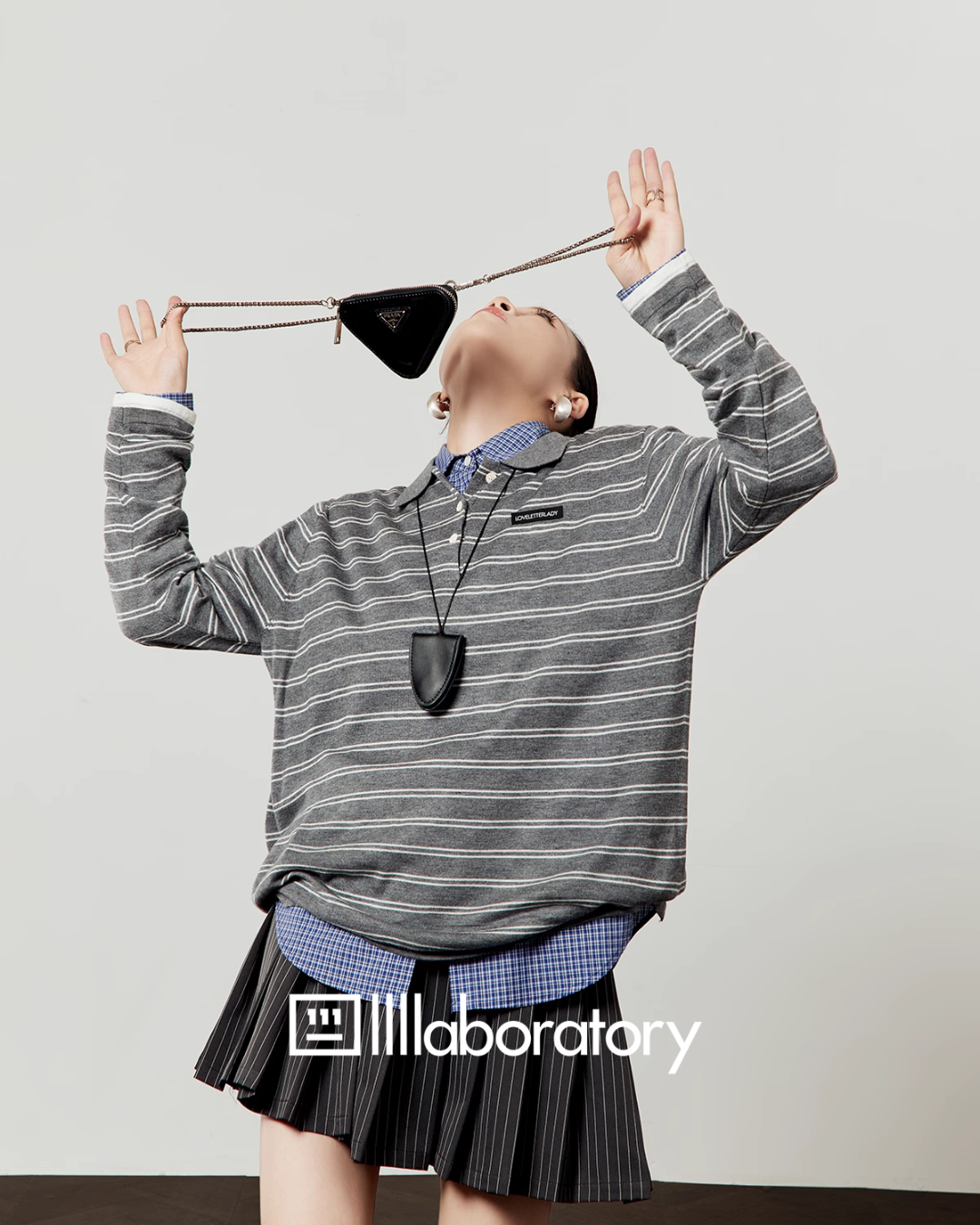 Round Knit Top / Striped A-Line Mini Skirt LLA0550