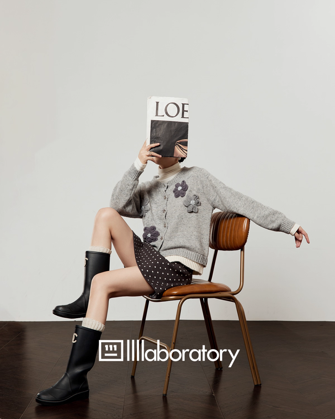 Flower Motif Knit Cardigan / Polka Dot Mini Skirt LLA0571