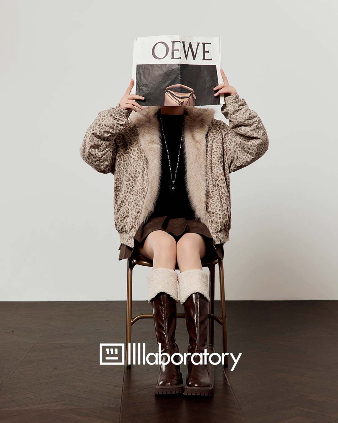 Leopard Fur Hood Jacket / Pleated Mini Skirt LLA0574