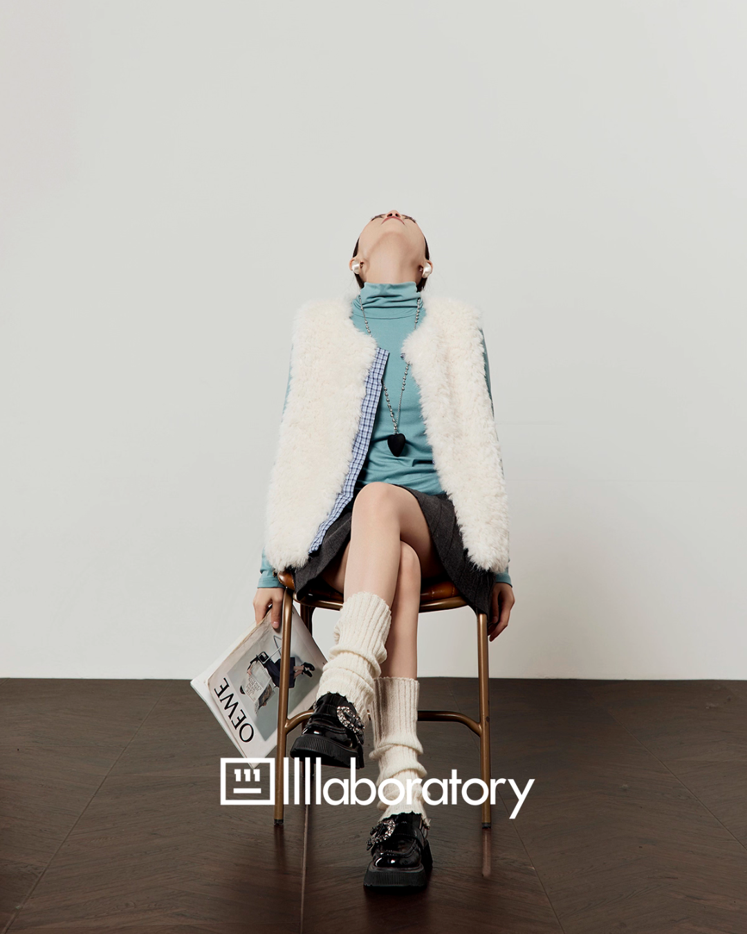 Fluffy Fur Vest / Pleated Skirt LLA0577