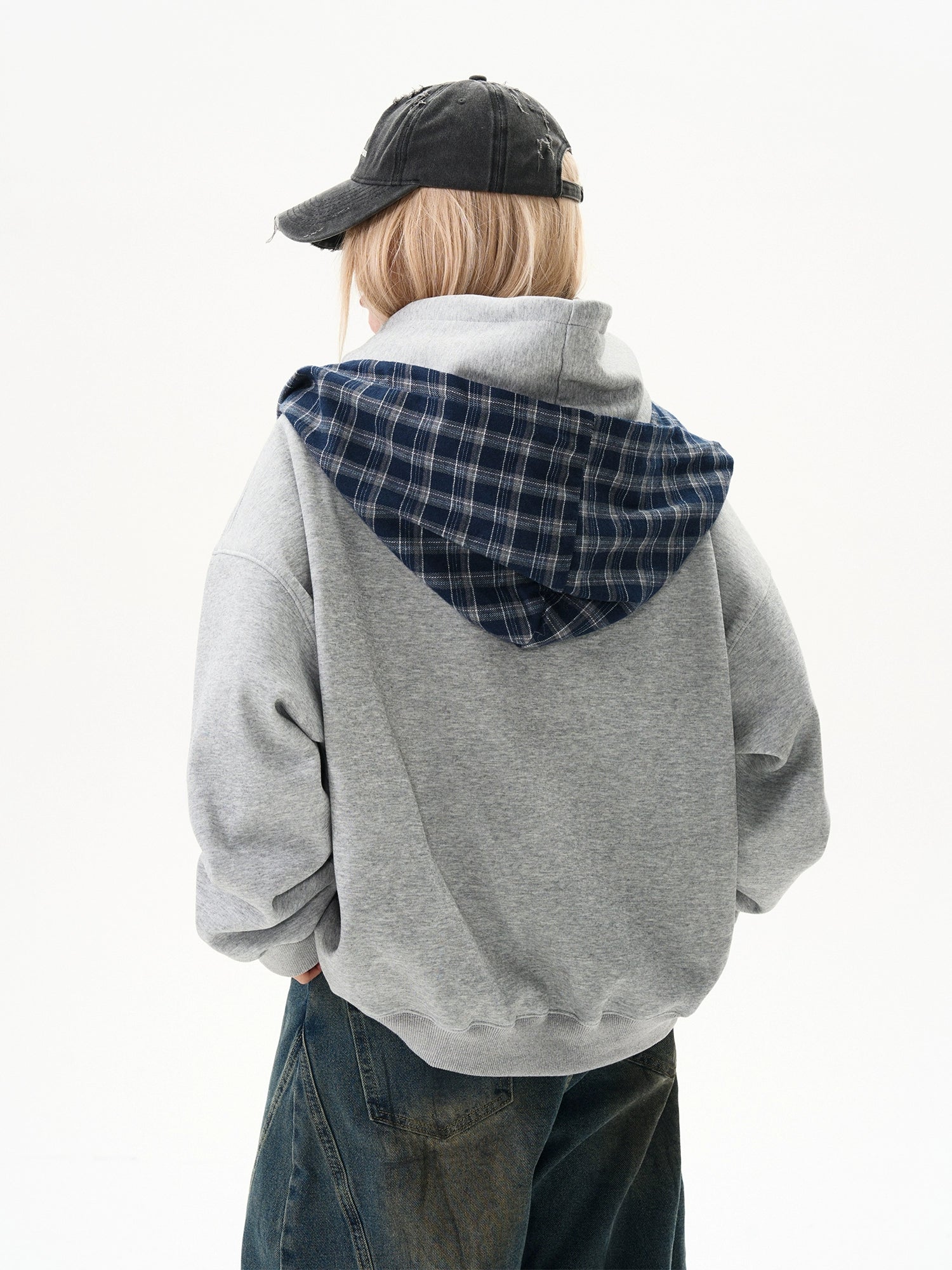 Checkered Shirt Layered Sweatshirt Hoodie MAD0012