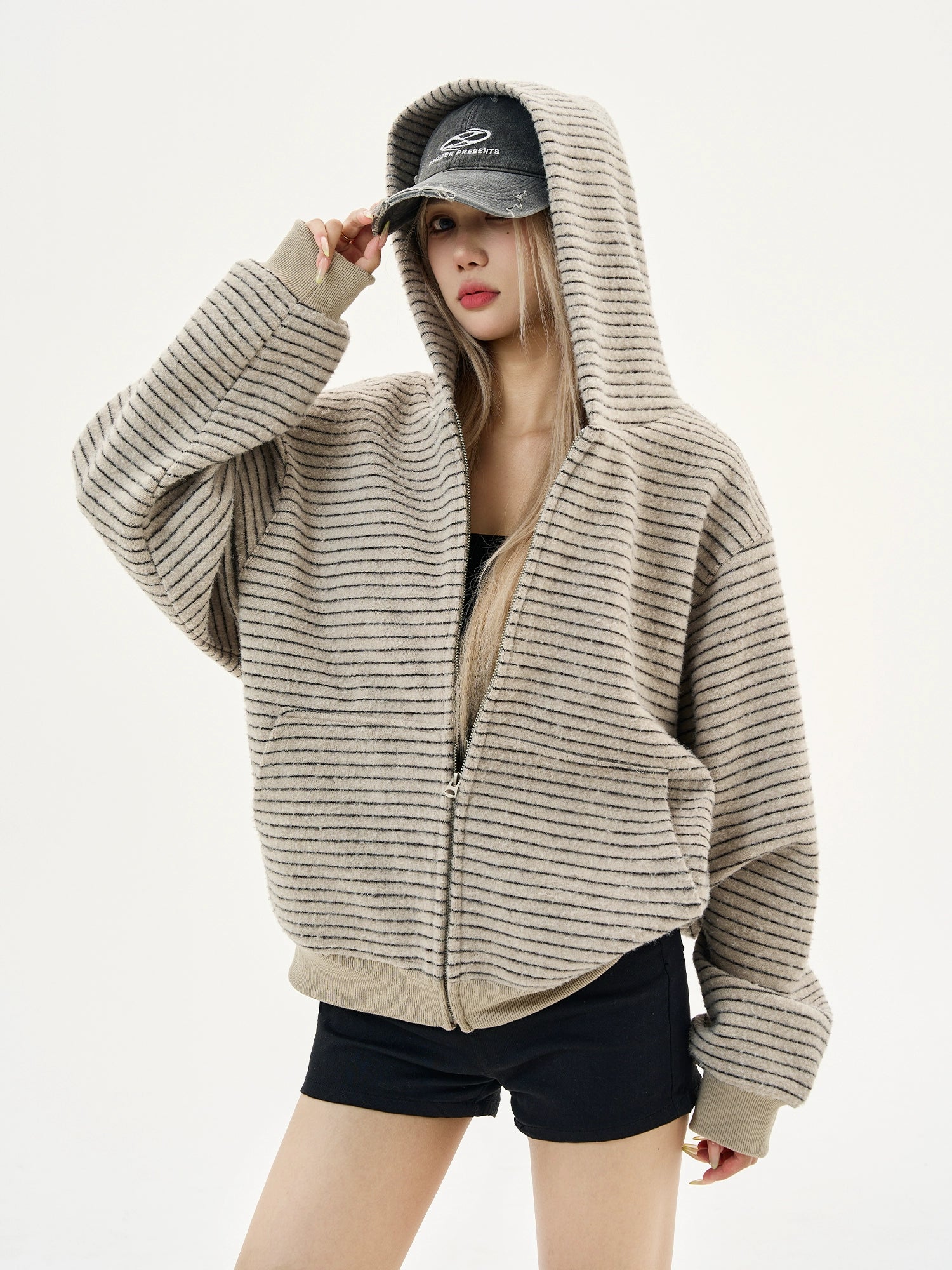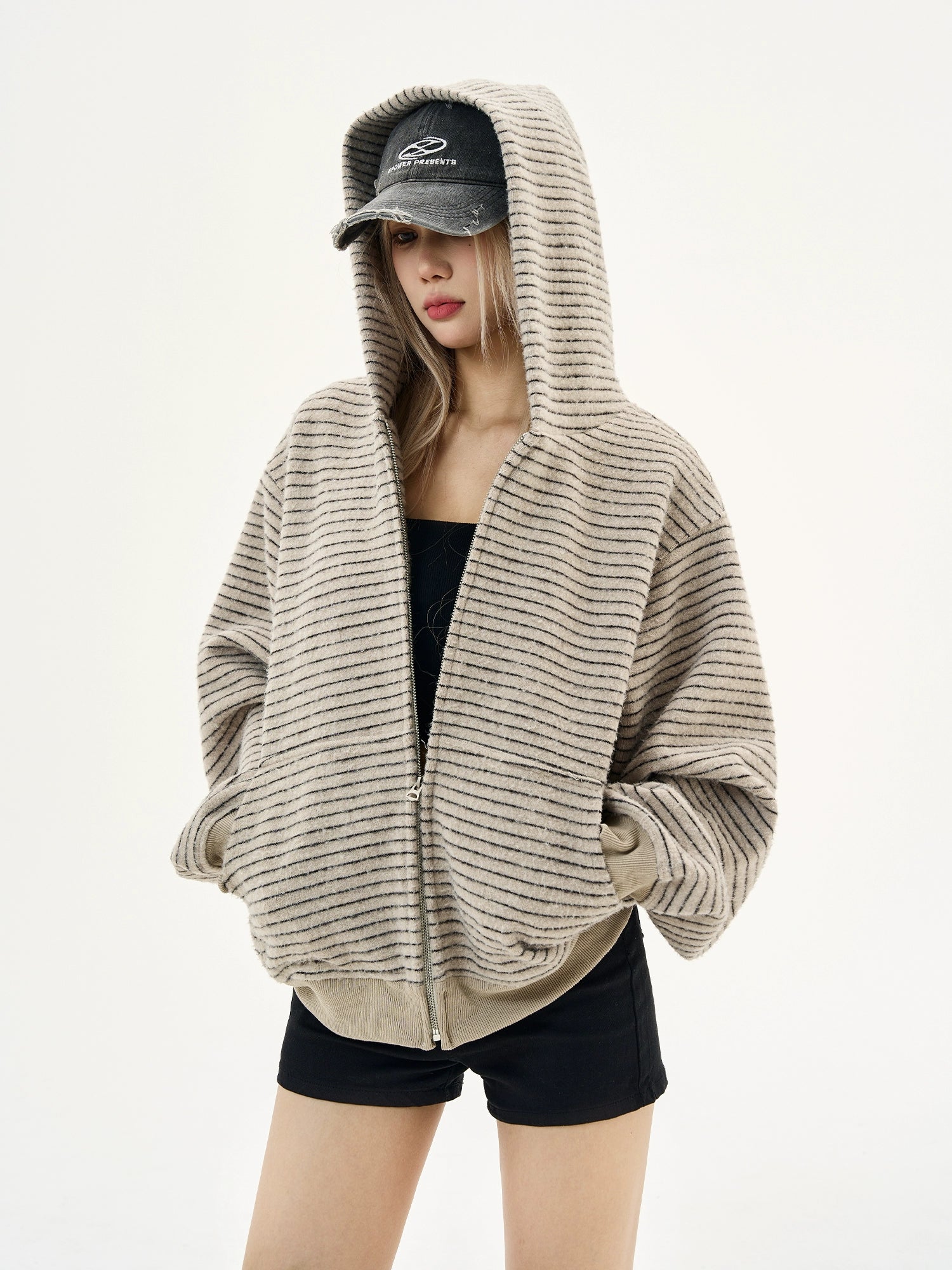 細ピッチのボーダーがラフに着こなせるジップパーカー。