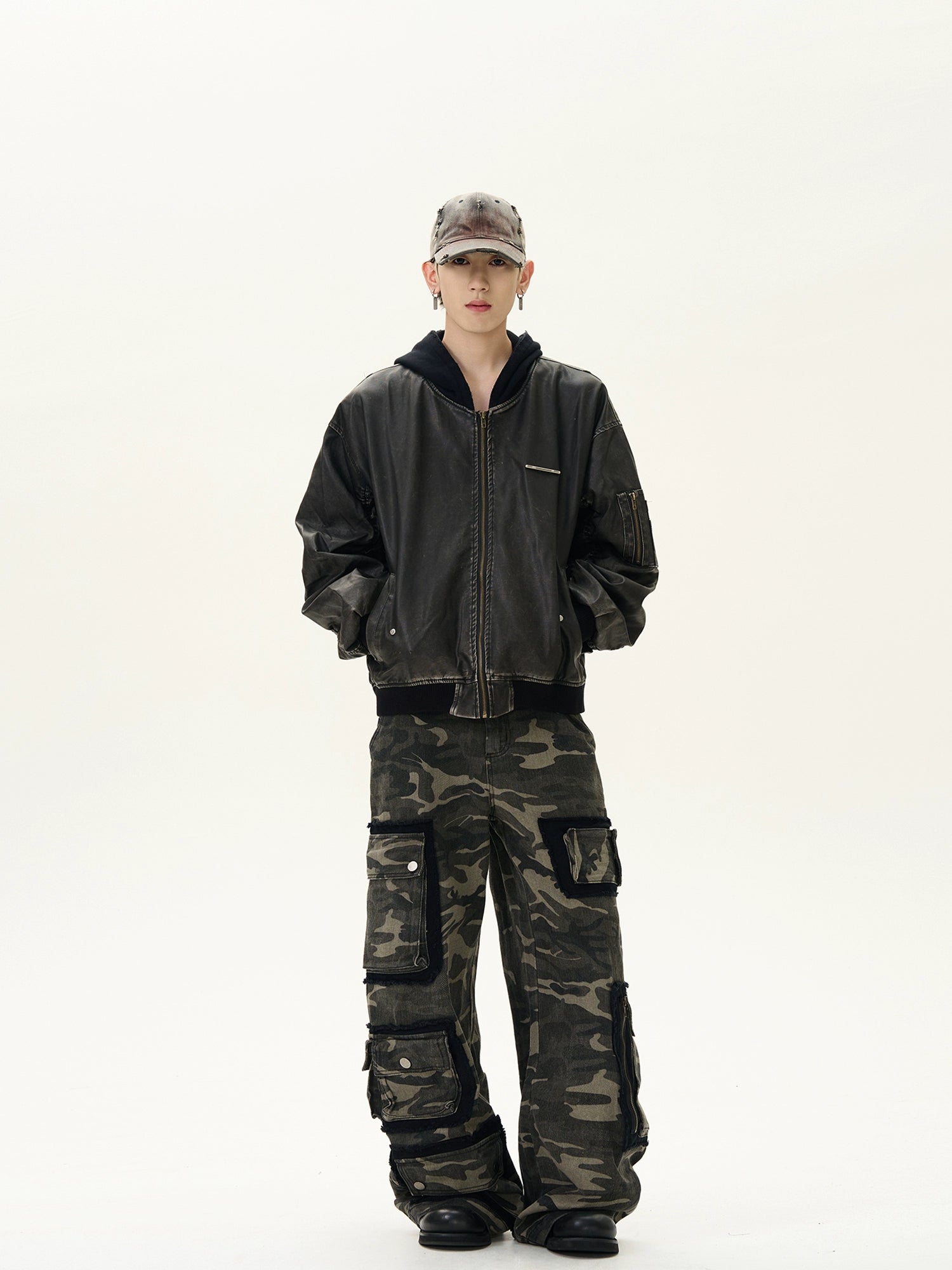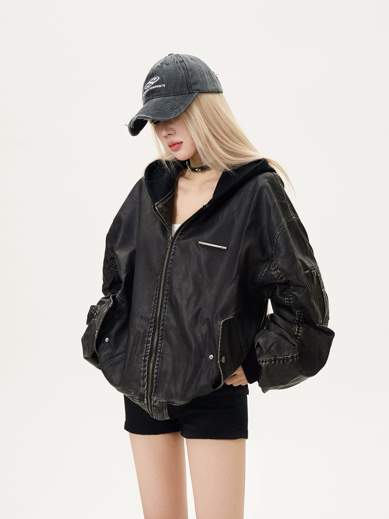 なめらかなフェイクレザーを使用し、メンズライクに仕上げたブルゾン。