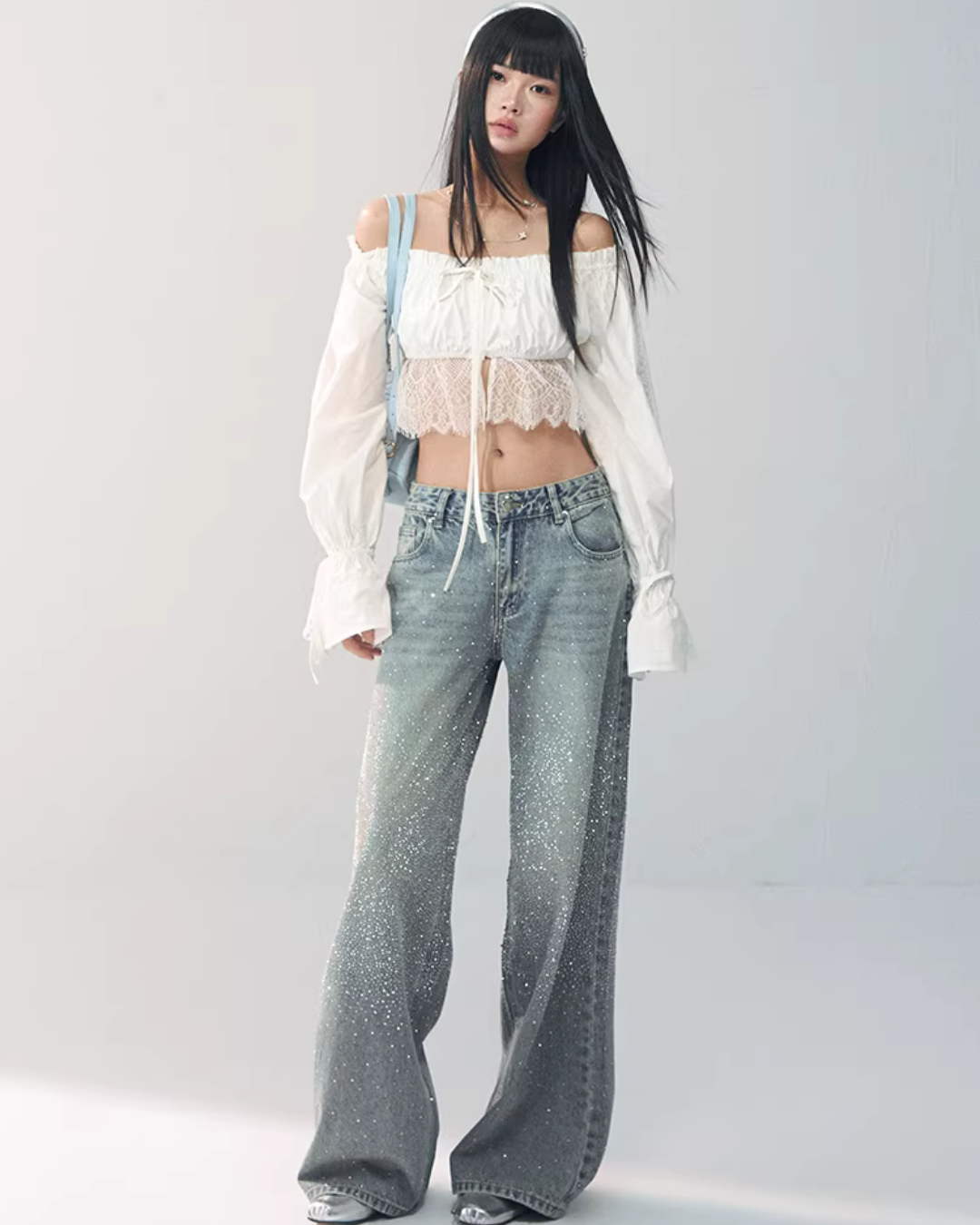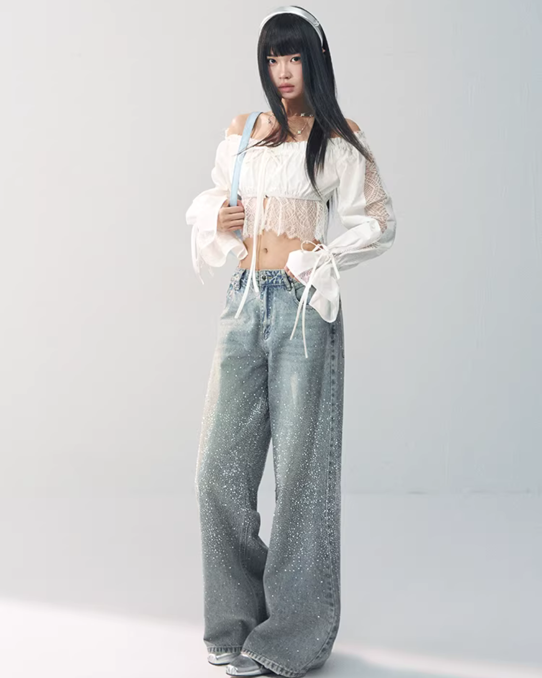 カジュアルなボトムスと合わせることで、甘すぎないバランス感のあるコーデが完成。