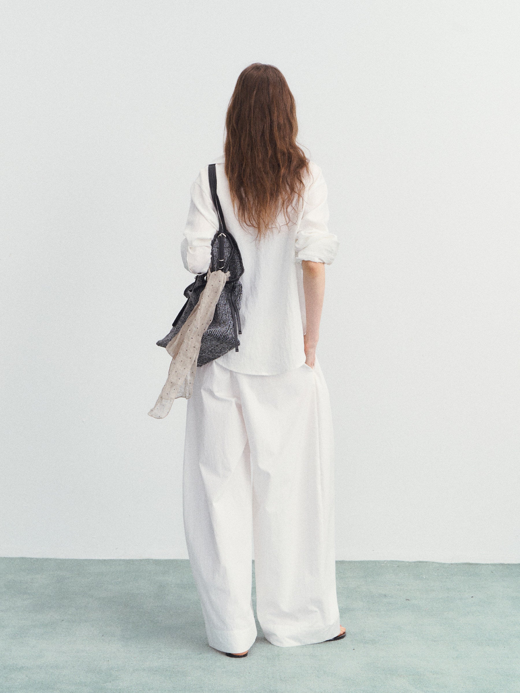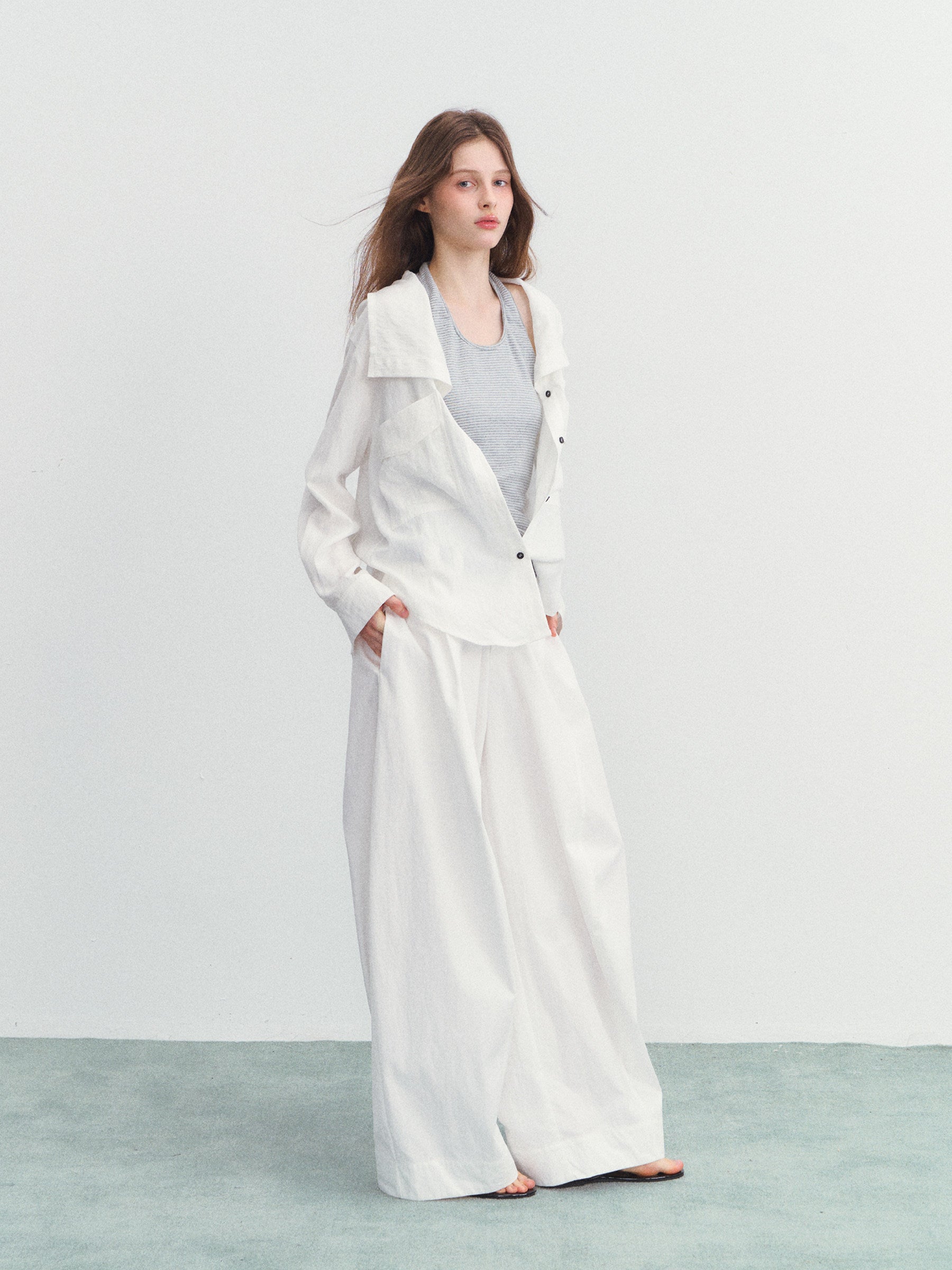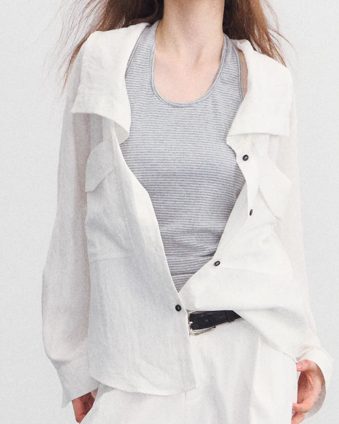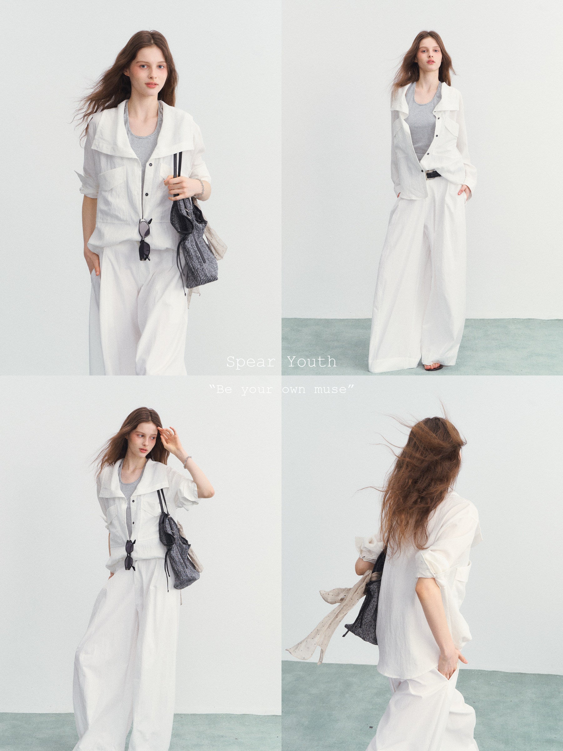 軽い素材感で履き着心地の良い、長袖シャツとタンクトップのセットアイテム。