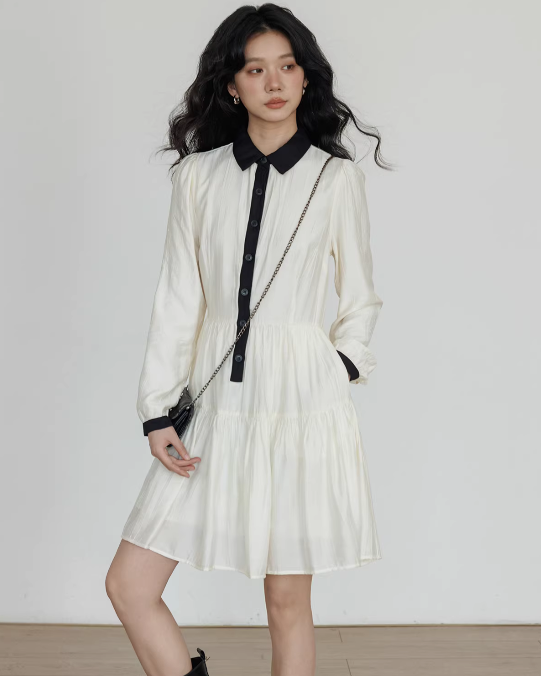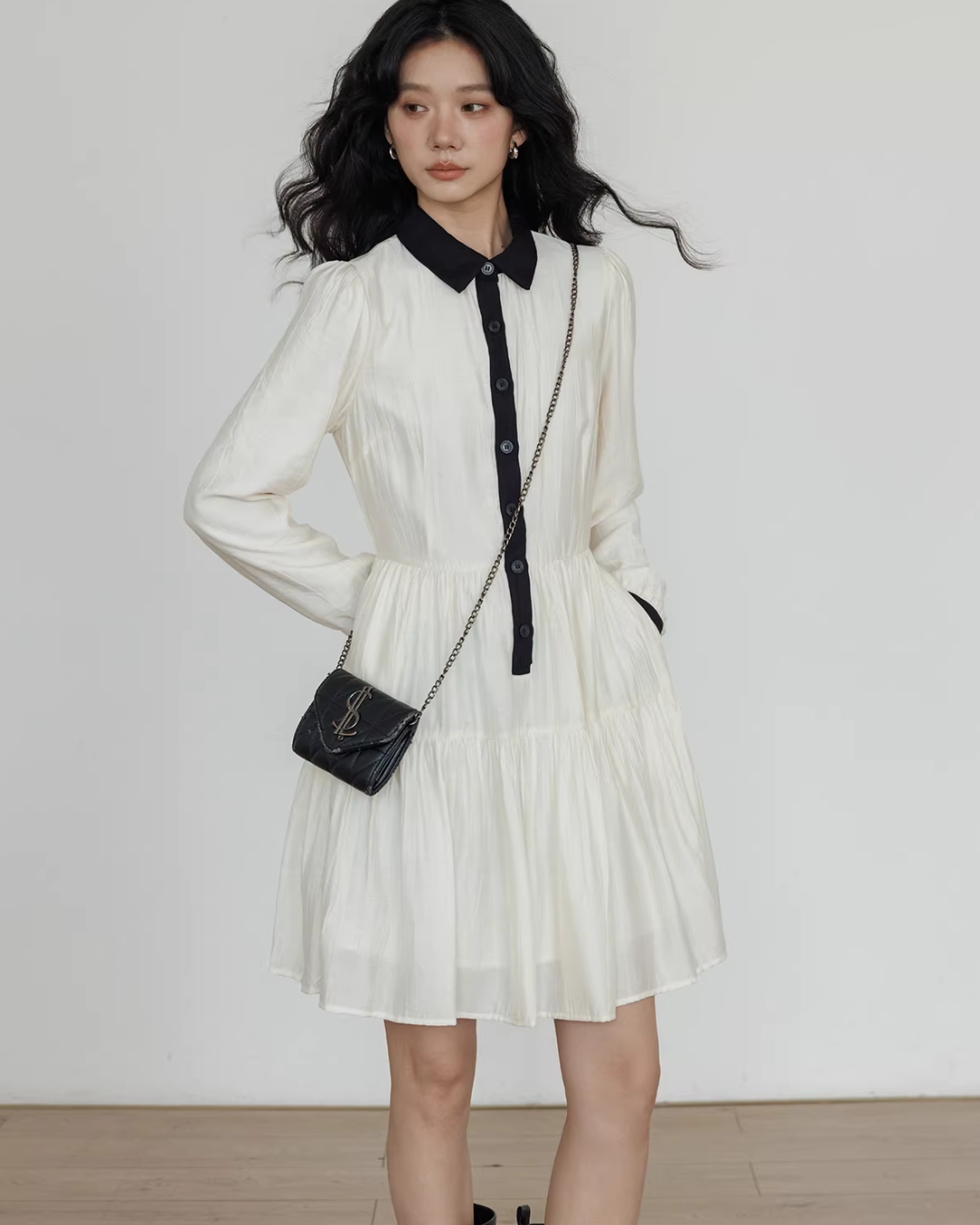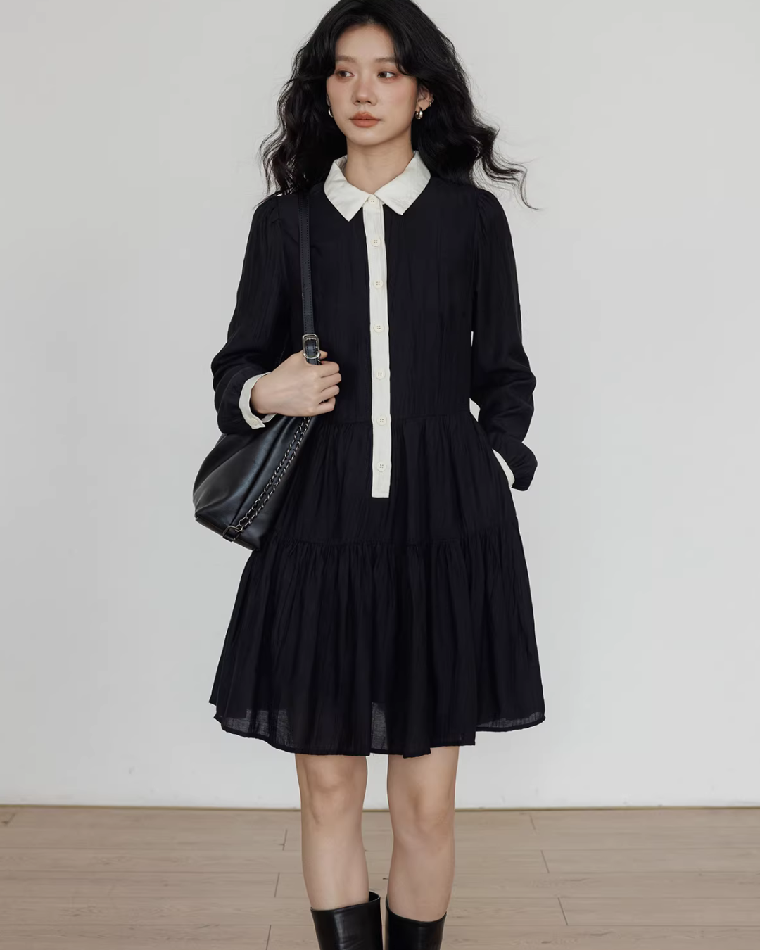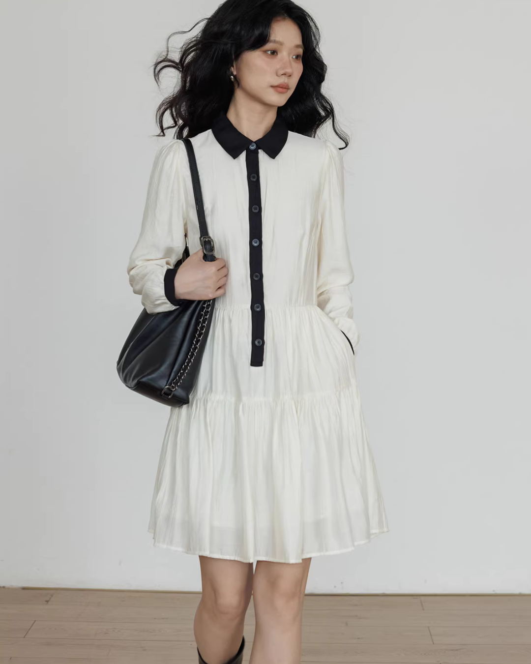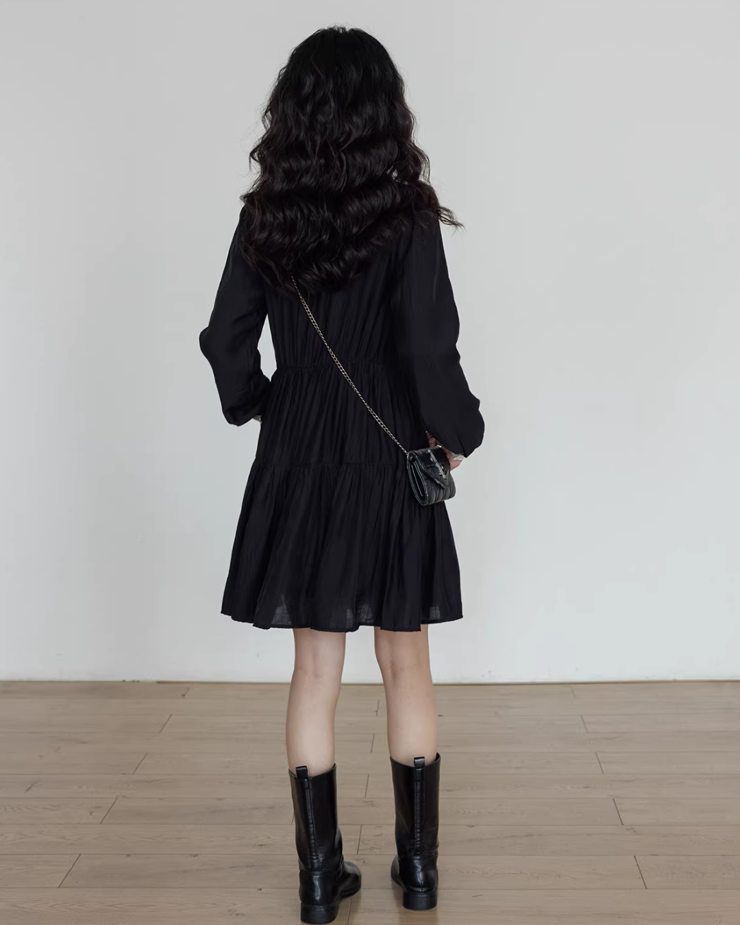 ウエストから広がるフレアシルエットが動くたびに揺れ動き、タイツやブーツとも相性抜群。