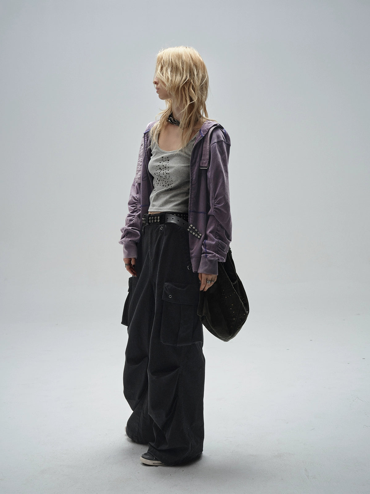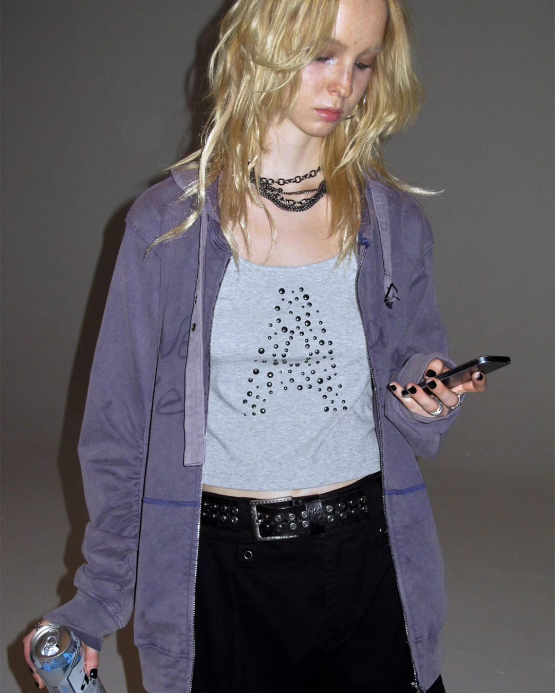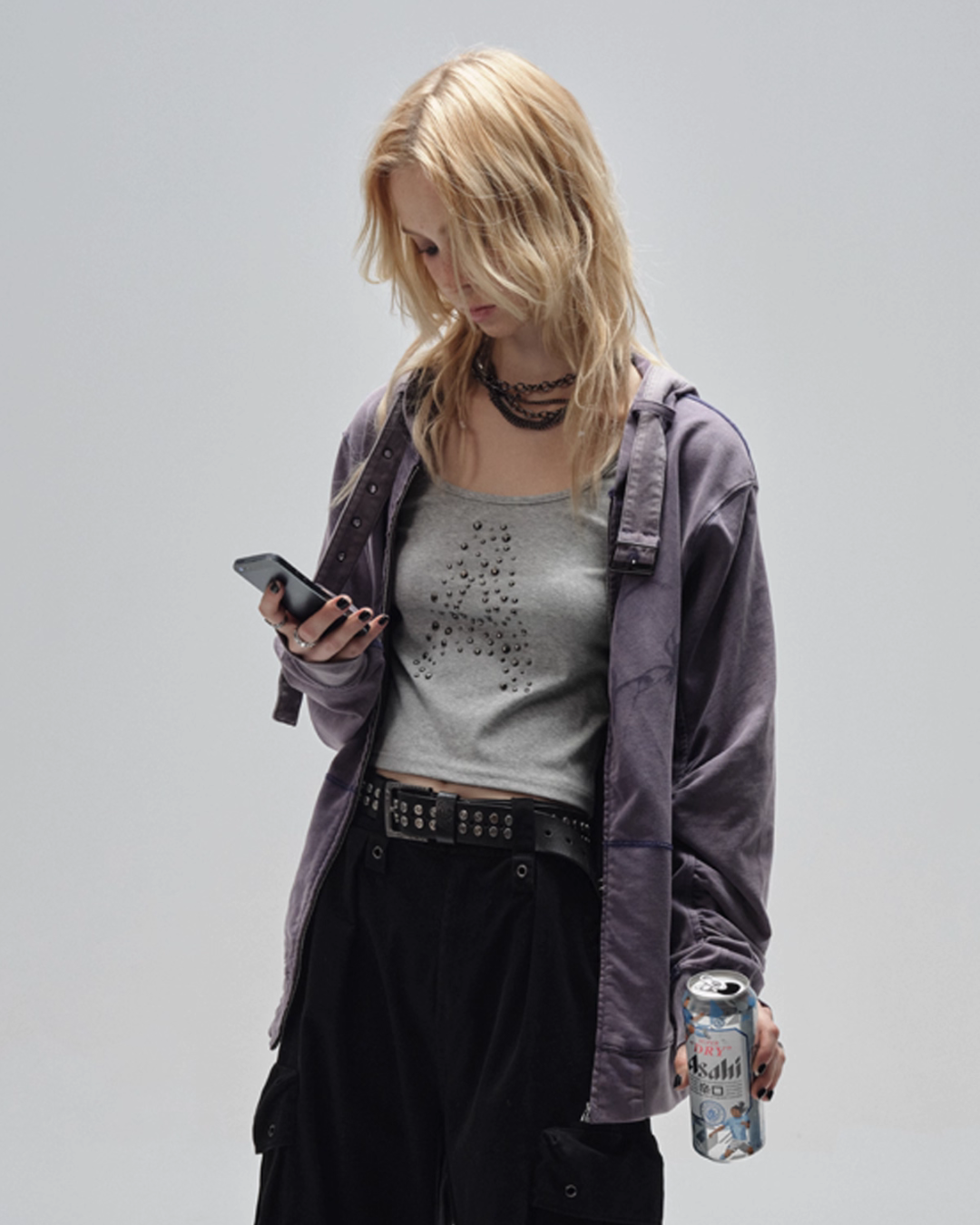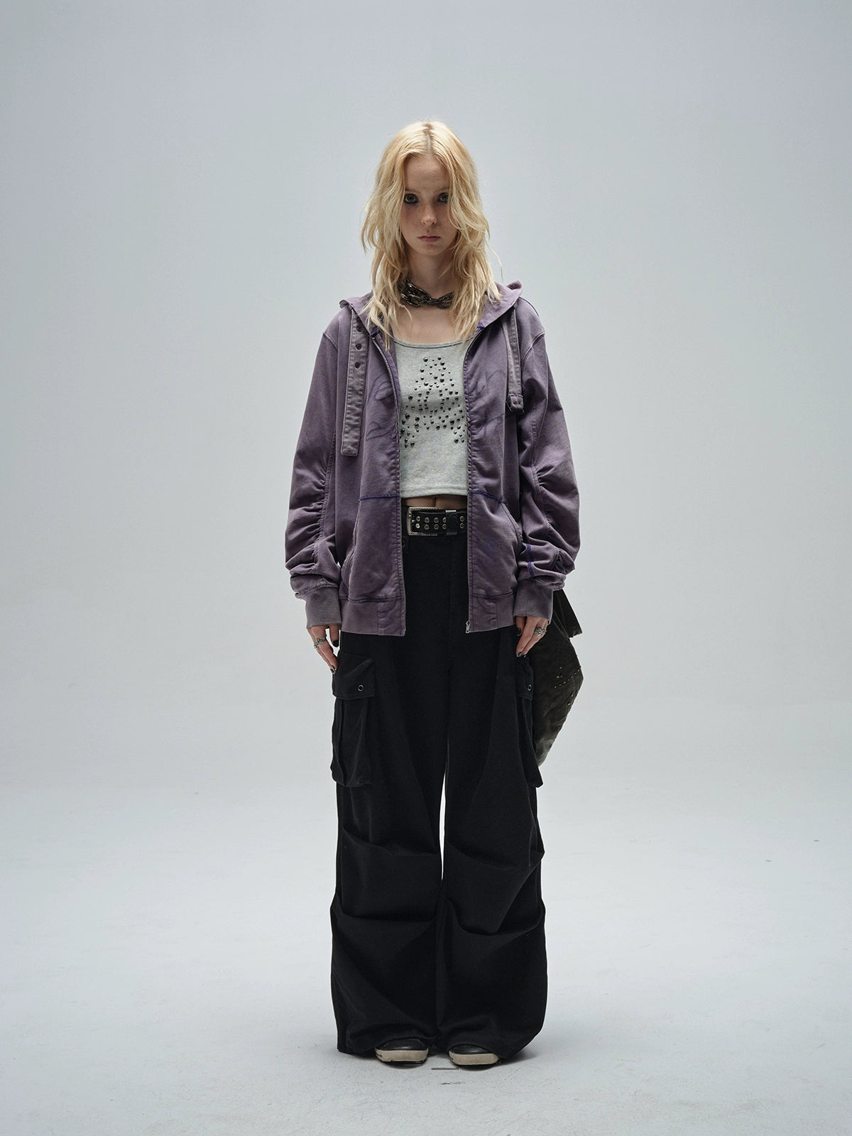 ヴィンテージ加工を施したデザイン性のあるジップパーカー。