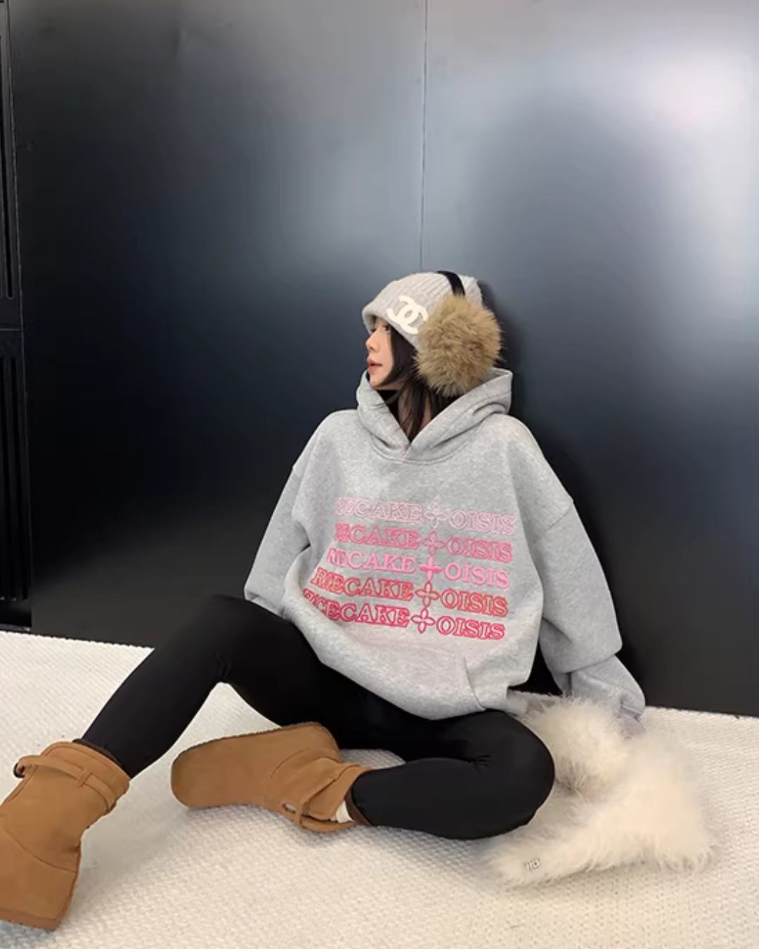 立体的なエンボス加工のロゴデザインが映えるスウェットパーカー。