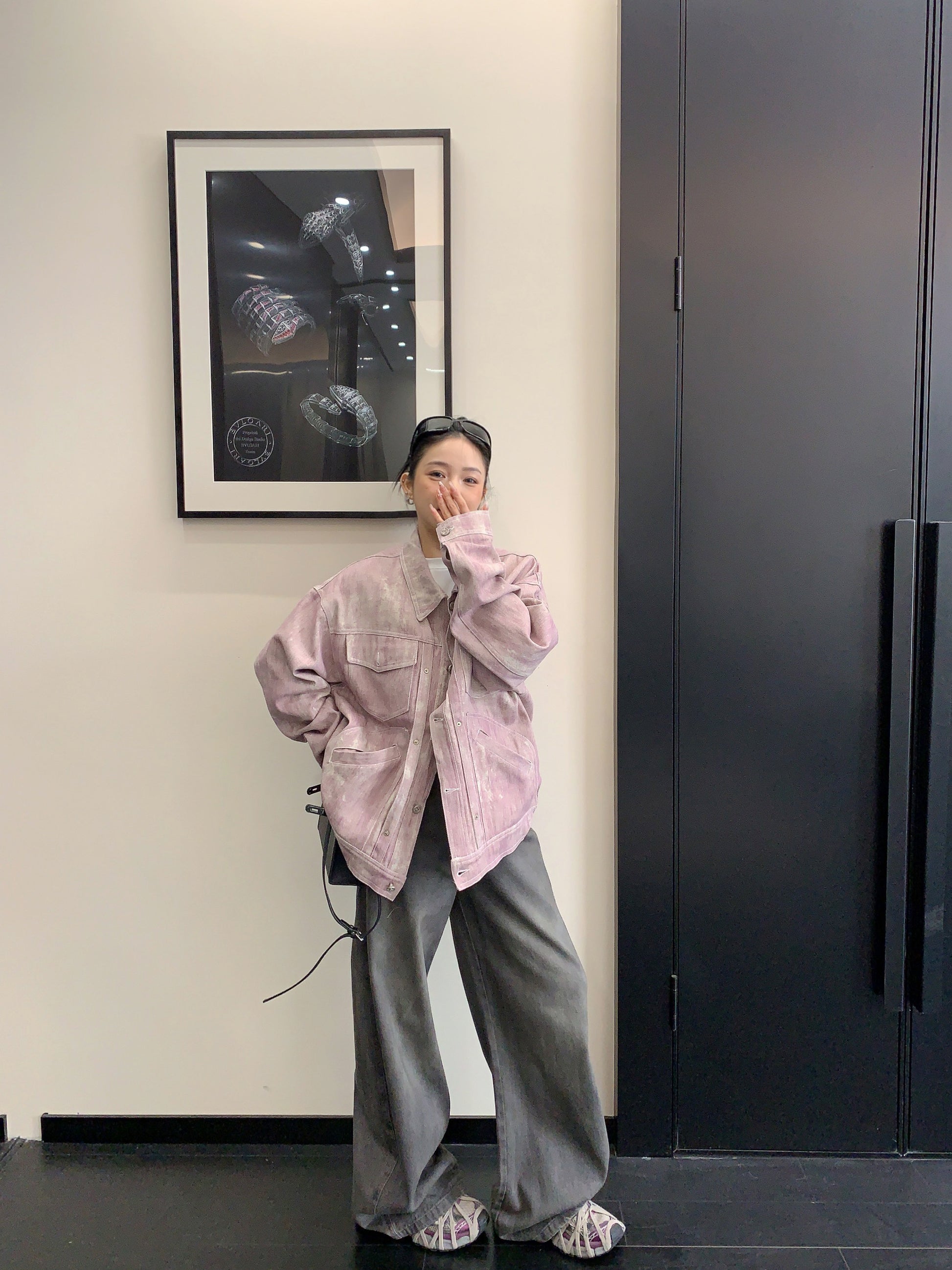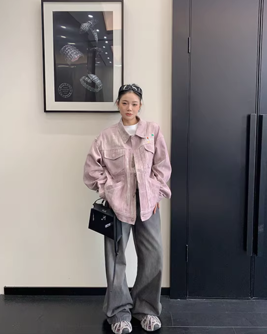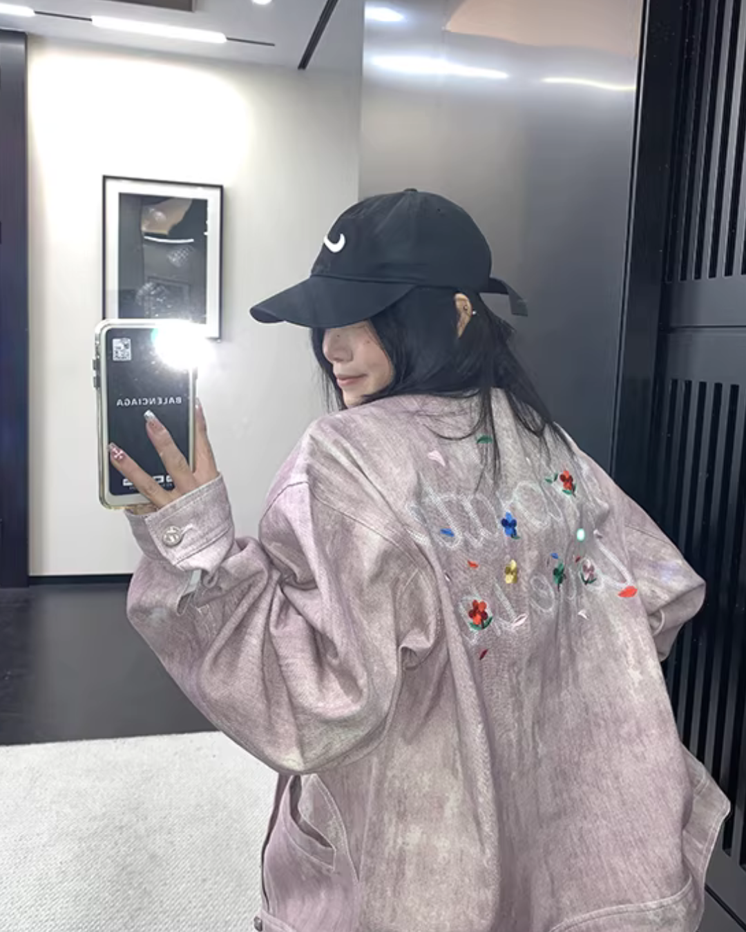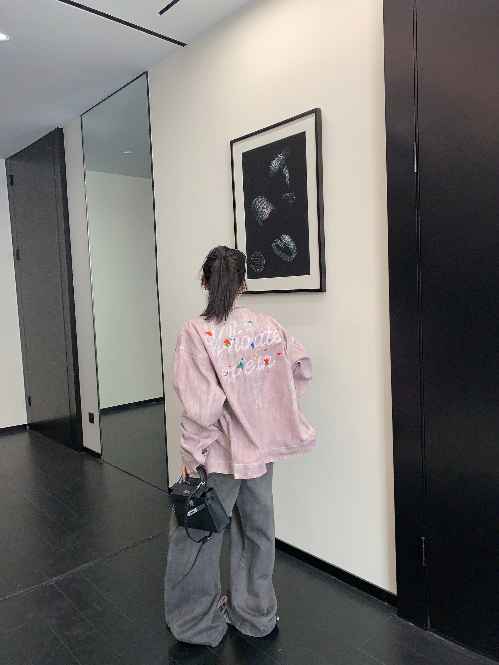 バックに大胆にあしらわれたロゴがポイントとなったデニムジャケット。