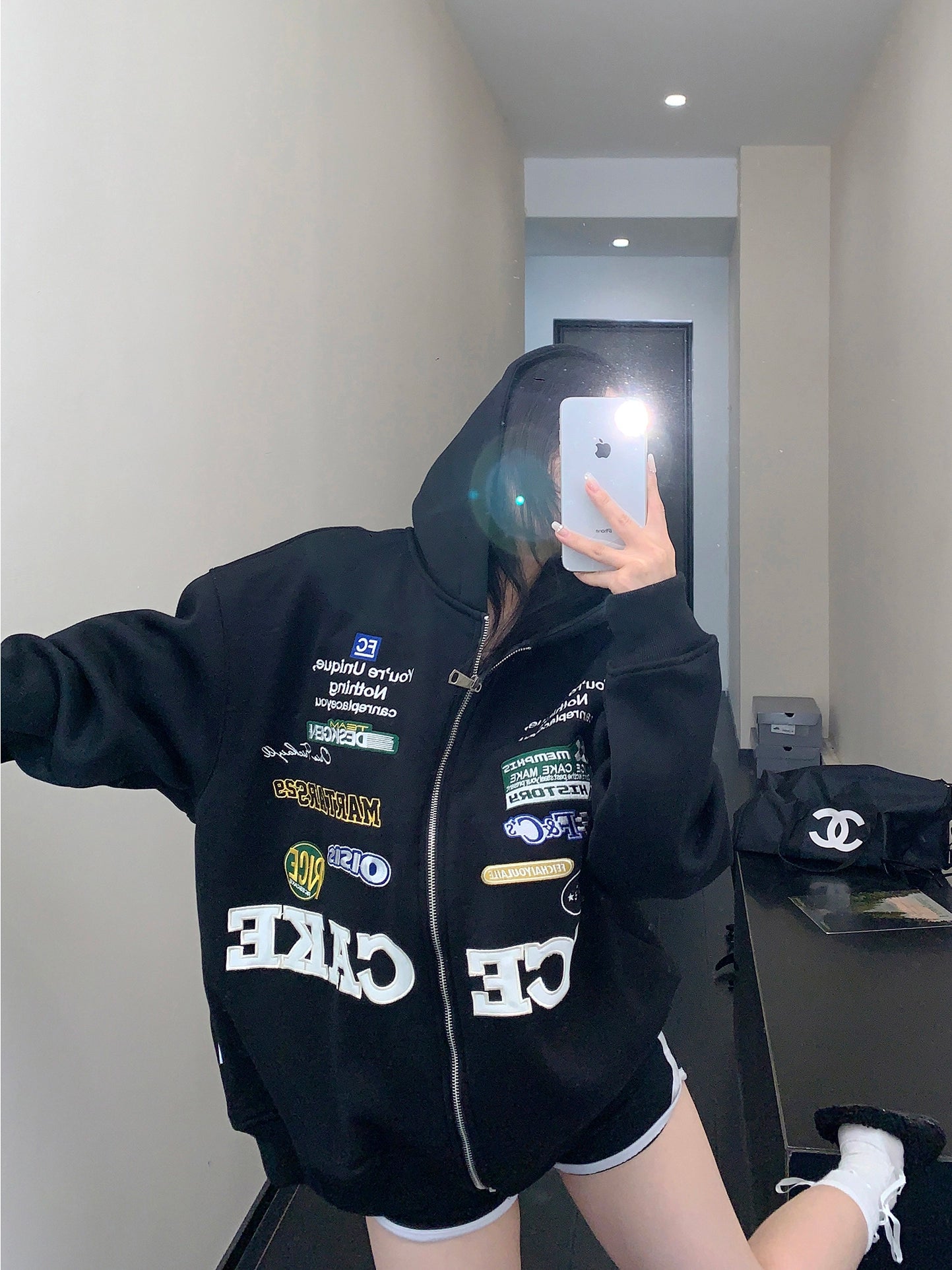 Patch Big Silhouette Zip Hoodie YLS0929